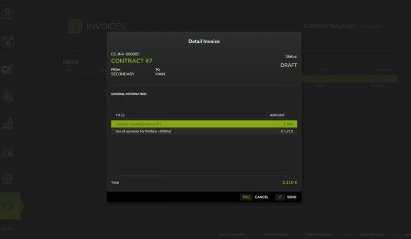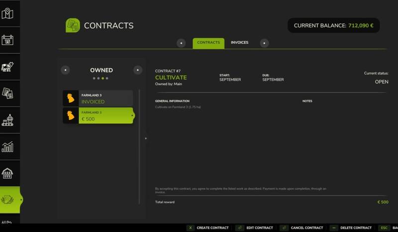 The mod includes a comprehensive invoice system, allowing farms to send, pay, and delete invoices. After completing a contract, contractors can generate an invoice directly from the job and send it to the hiring farm for payment, establishing a realistic and structured workflow. Field access is automatically granted when a contract is accepted, allowing the contractor farm to work on the specific field associated with that contract.