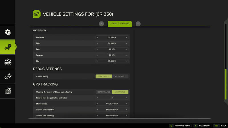 - Disable GPS tracking (end of the row, end of the course, on connecting path, or never).