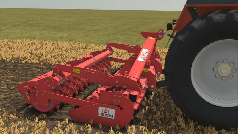The Lisicki MG 300 is a 3-meter wide implement designed for efficient soil preparation. With a working speed of 10 km/h and a power requirement of 115 HP, it's ideal for medium-sized tractors. This version features a new re-skin and is available at a cost of 19,500.