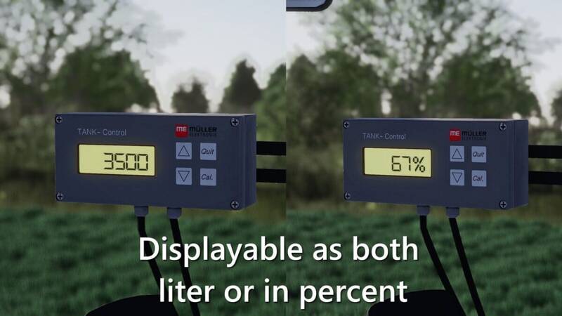 The ME Mueller Elektronik Display Prefab shows the fill level of attached implements or trailers directly on the vehicle. For installation instructions, please refer to the included prefabDesc.xml file.