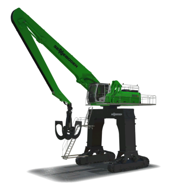 The Sennebogen 850E is equipped with a grapple and features a gantry configuration for maximized space-saving, high reach, and productivity. Look forward to improvements and new tools in the future!